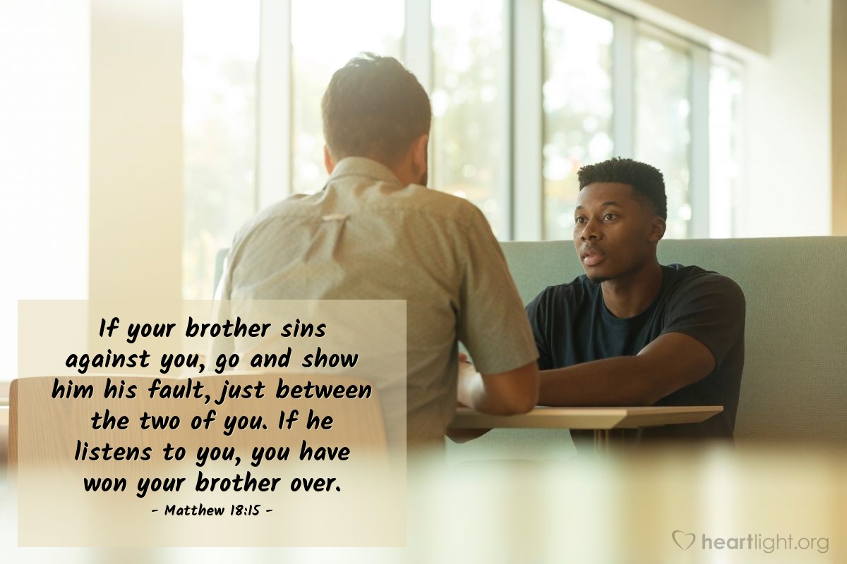 主耶稣知道教会容纳罪恶的危险是何等大,所以祂给祂的门徒这段教训,吩咐他们用爱心劝戒那犯罪的信徒。如果那犯罪的人刚愎硬心,不肯悔改,不听一位弟兄的提醒,又不听两三个信徒的劝告,就是全教会的忠言也藐视不顾,到这时为保全众信徒的缘故,不能再姑息优容,只有看他像外邦人和税吏一样。不这样作,就难免教会中有许多人继起效法他的恶行,以致教会中渐渐充满各样罪恶。