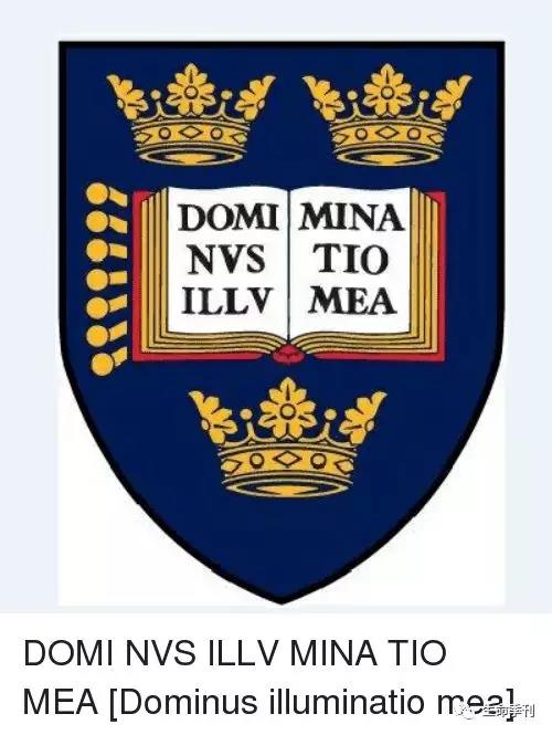 英国最古老的大学牛津大学也是世界最早创办的大学之一,十一世纪的时候就已经存在,十六世纪欧洲黑暗时期结束,开始进入文艺复兴科学的时代,甚至宗教改革运动也是风起云涌,牛津大学就在那时候设计了他们的校徽,他们在校徽上采用诗篇27:1“DOMI NVS ILLV MINA TIO MEA” (拉丁文),耶和华是我的亮光这一句话作为他们的校训。